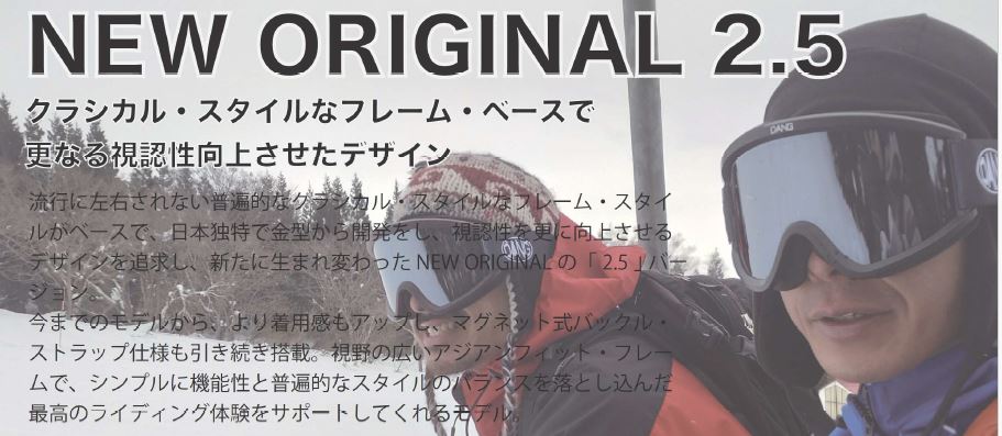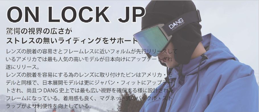 2024シーズンより、ワイドフレームの【ON LOCK JP】と以前よりフレームが大きくなった【NEW ORIJINAL2.5】がリリースされレンズも国内トップレベル並みに見やすくなっています。偏光レンズ搭載モデルは人気です!